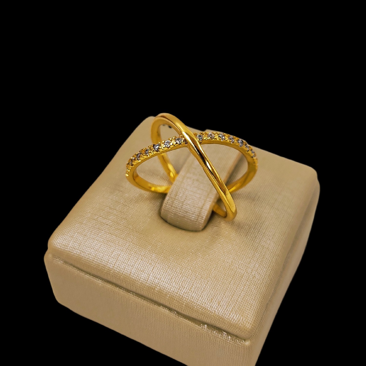 Anel Feminino X cravejado com regulagem Banhado a Ouro 18K